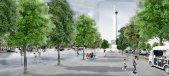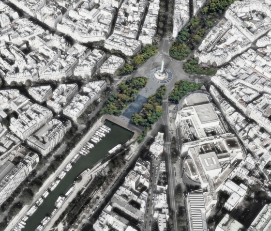 D’une logique du rond-point, l'ambition d'Anne Hidalgo est de passer à celle de place-paysage. Mieux ancrée dans le patrimoine et l’histoire de la ville, la place de la Bastille offrirait une continuité à la fois physique et visuelle avec le Bassin de l’Arsenal, ouvrant son horizon jusqu’à la Seine.